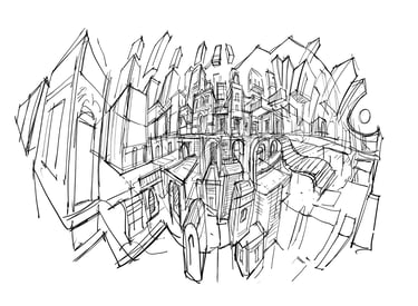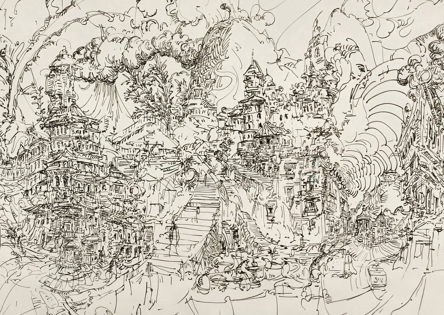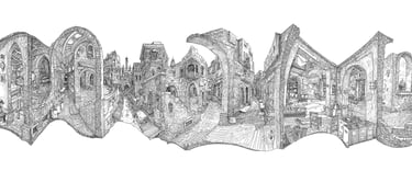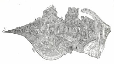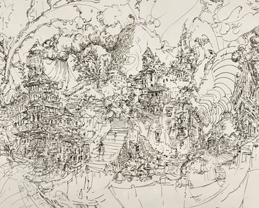 Process Drawing , Tallinn(2023) -Brush and Ink on paper, 4' x 6'
