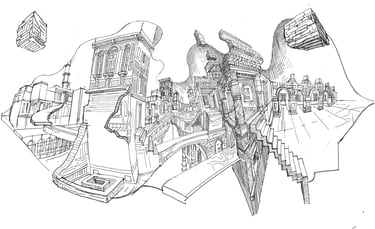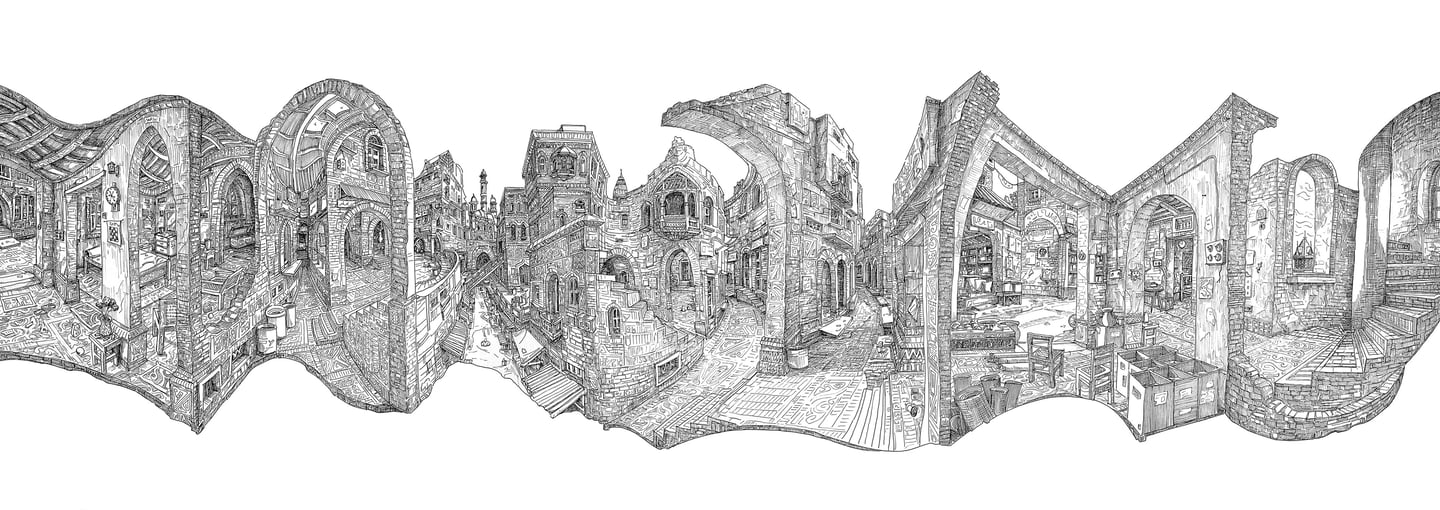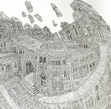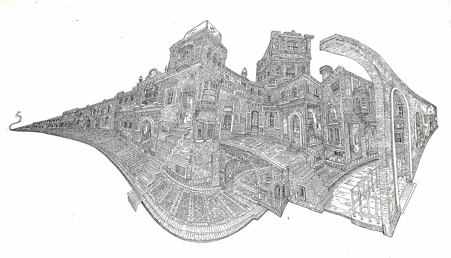 A series of artworks capturing the labyrinthine essence of Lahore, reimagining it through a dreamlike perspective while distorting and deconstructing viewpoints to reveal seemingly hidden places."