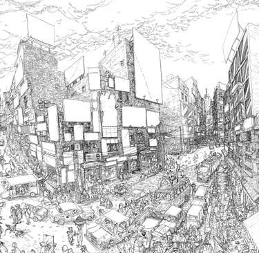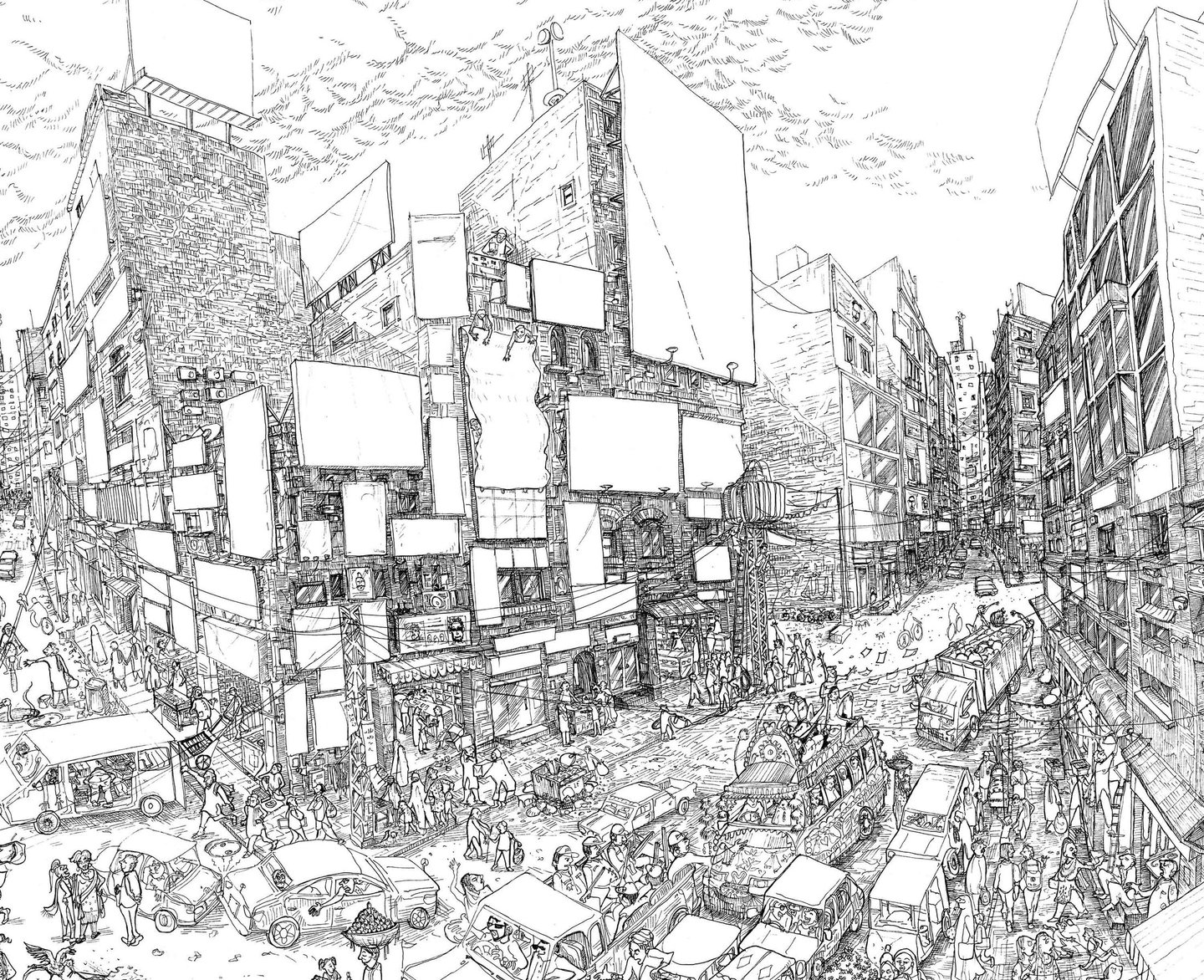 City of Dreams and Nightmares, Lahore(2017) - Pen and Ink on Paper, 8' x 4'