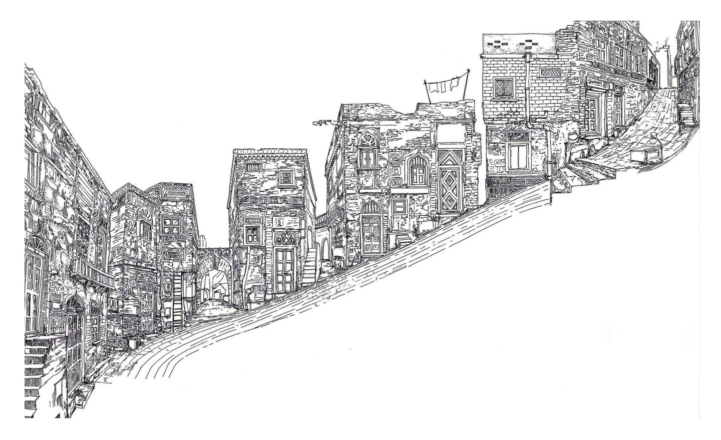 Mohalla 2, Lahore(2016) - Pen and Ink on Paper, 11.7 in x 16.5 inches.