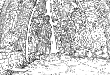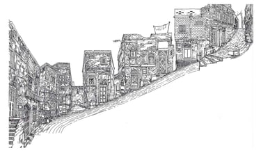 Mohalla 1, Lahore(2016) - Pen and Ink on Paper, 11.7 in x 16.5 inches.