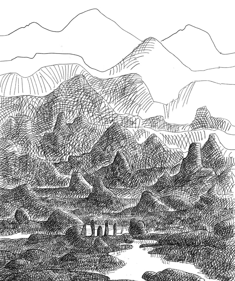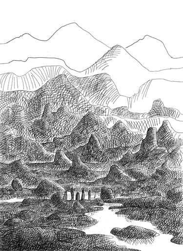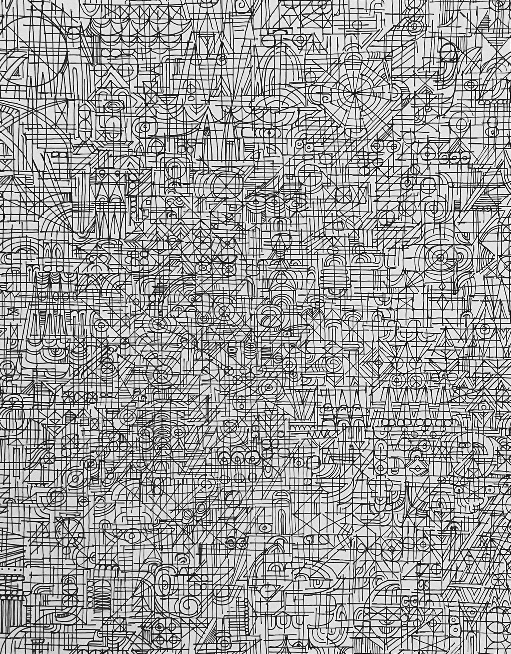 Meditation in Geometry, Tallinn(2024) -Pen and Ink on Paper, 20" x 32"